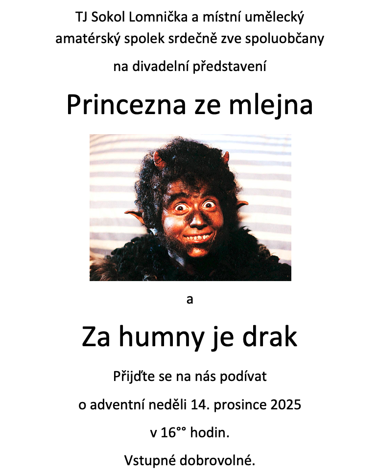 T. J. Sokol Lomnička pořádá v pátek 31. 10. 2025 přespání v sokolovně.
