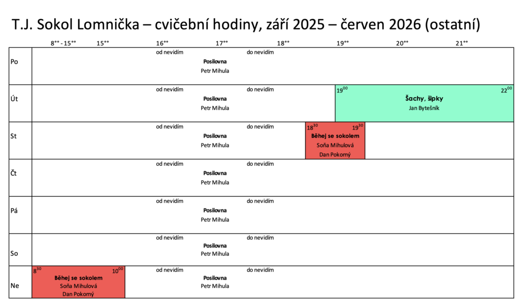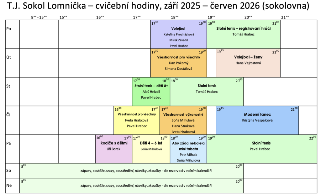 Cvičební hodiny Rozvrh pro nový cvičební rok září 2025 – červen 2026 Cvičební hodiny ke stažení [pdf]